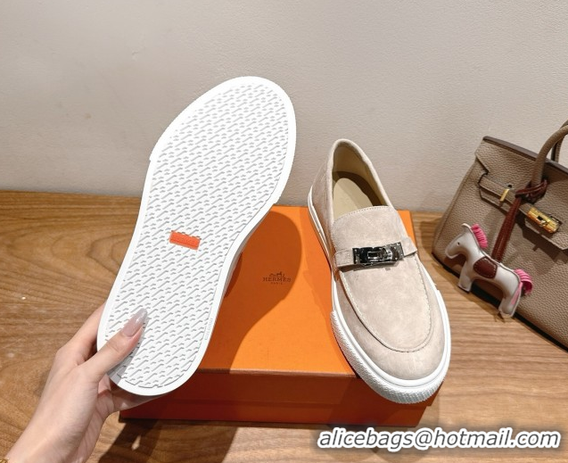 Good Quality Hermes Game Suede Slip-on Sneakers with Kelly Buckle Grey2 2025 H082007 0820064