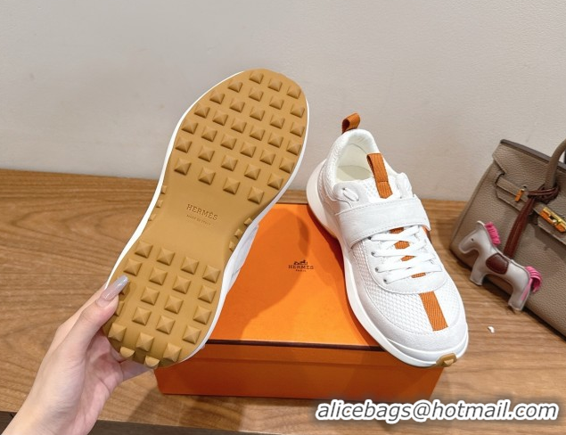 > Shoes Plaza > Hermes Shoes > Stylish Hermes Loop Sneakers in Suede and Knit Mesh with Strap White 1023022