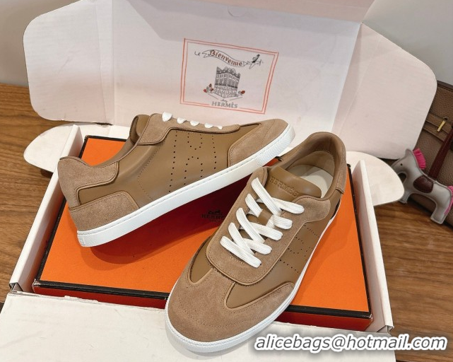 Top Grade Hermes Match Sneakers in Suede and Calfskin Leather Light Brown 2026 H261863