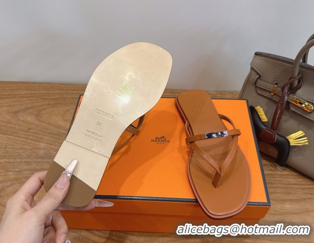 Purchase Hermes Miss Flat Slides Thong Sandal in Calfskin Leather with Kelly Buckle Brown 2026 0304022