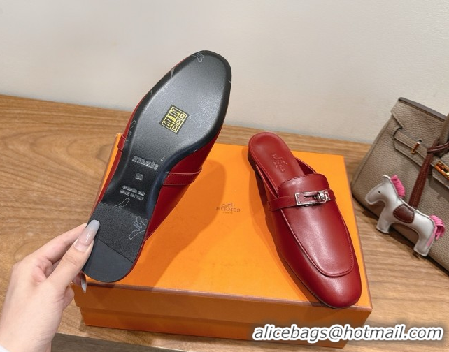 Good Quality Hermes Oz Flat Mules in Calfskin Leather with Kelly Red 2025 H082004 0820028