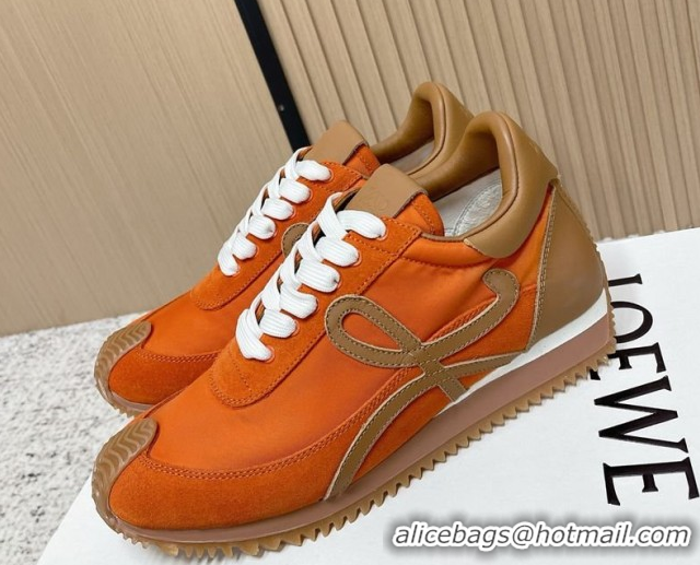 Good Quality Loewe Flow Runner Sneakers in Nylon and Suede Orange/Brown 0226033
