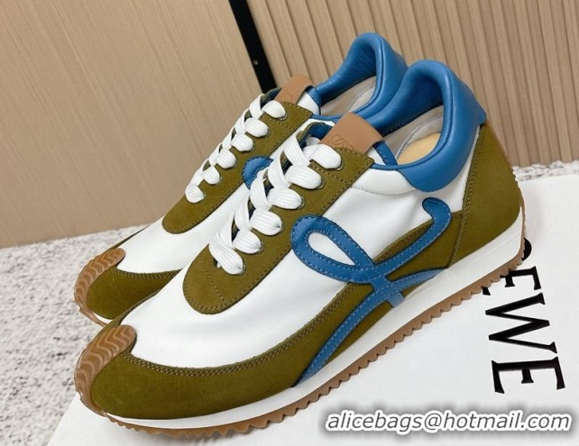 Good Quality Loewe Flow Runner Sneakers in Nylon and Suede White/Green 0226065
