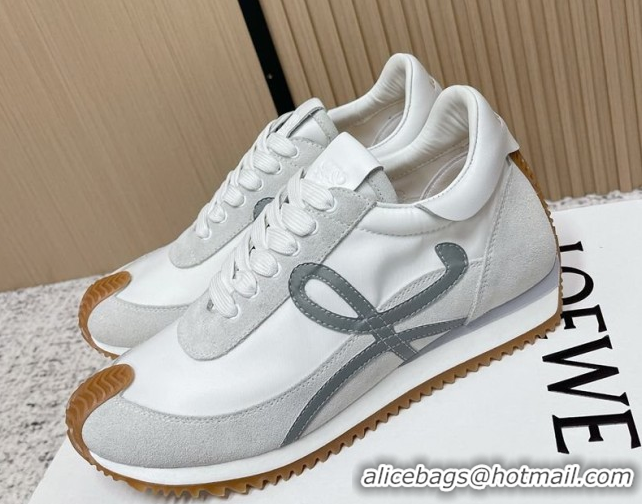 Good Quality Loewe Flow Runner Sneakers in Nylon and Suede White/Grey 0226050