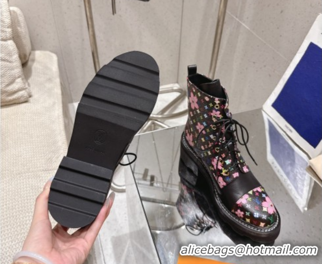 Grade Quality Louis Vuitton LV x TM Monogram Canvas and Leather Laced-up Ankle Boots Black LV102204 1022034