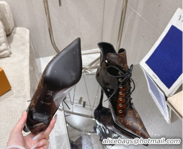 Classic Hot Louis Vuitton Monogram Canvas and Leather Laced-up Ankle Boots 9cm Brown/Black LV102203 1022022