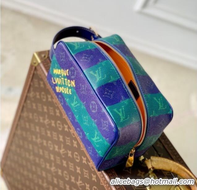 > Louis Vuitton Handbags > 2025 Louis Vuitton Bags > Promotional Louis Vuitton Mens Locker Dopp Kit Clutch in Blue Stripes Monogram Heritage Canvas M25902 2025