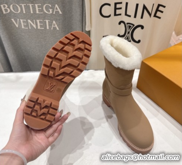 Top Design Louis Vuitton Territory Ankle Boots in Nubuck Leather and Wool with Buckle Beige 1AIU42 1219081