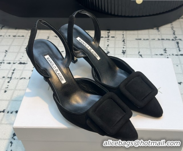 Shop Duplicate Manolo Blahnik MAYSLI Slingback Pumps with Buckle in Suede 5112520 Black 2026