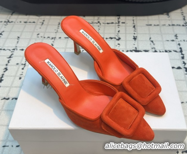 Big Discount Manolo Blahnik MAYSALE 70 Mules with Buckle in Suede 5112526 Orange 2026