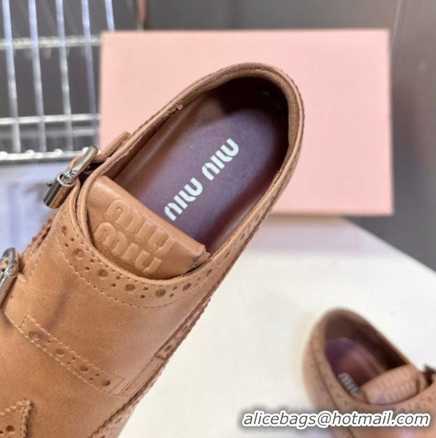 Good Quality Miu Miu Perforated Leather Brogue Shoes with Buckles Brown 5E510E 1024104