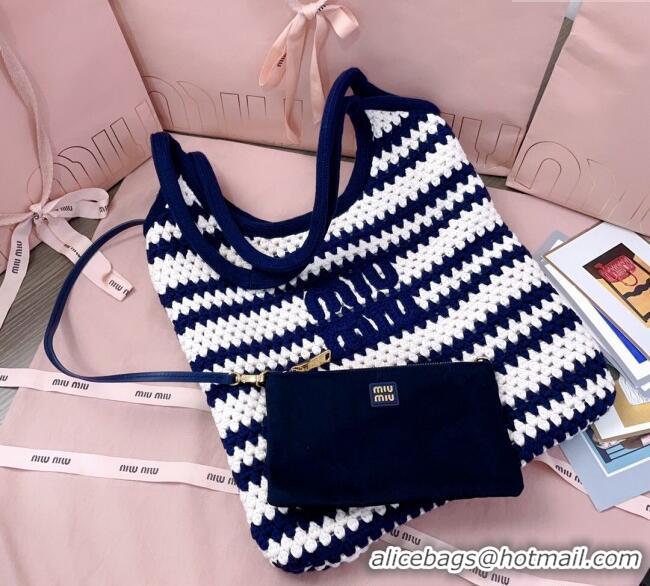 Good Quality Miu Miu Striped Knit tote bag 5BG231 White/Blue 2025