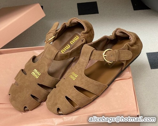 Good Quality Miu Miu Suede Fisherman Flat Sandals 5E395E Brown 2026