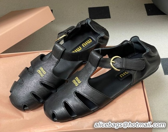 Luxury Cheap Miu Miu Nappa Leather Fisherman Flat Sandals 5E395E Black 2026