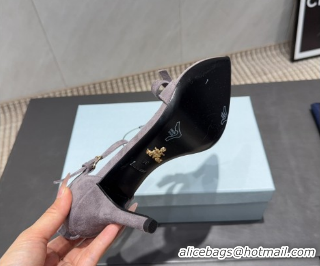 Purchase Prada Suede Bow Heel Sandals 8.5cm 1X196O Grey 2026
