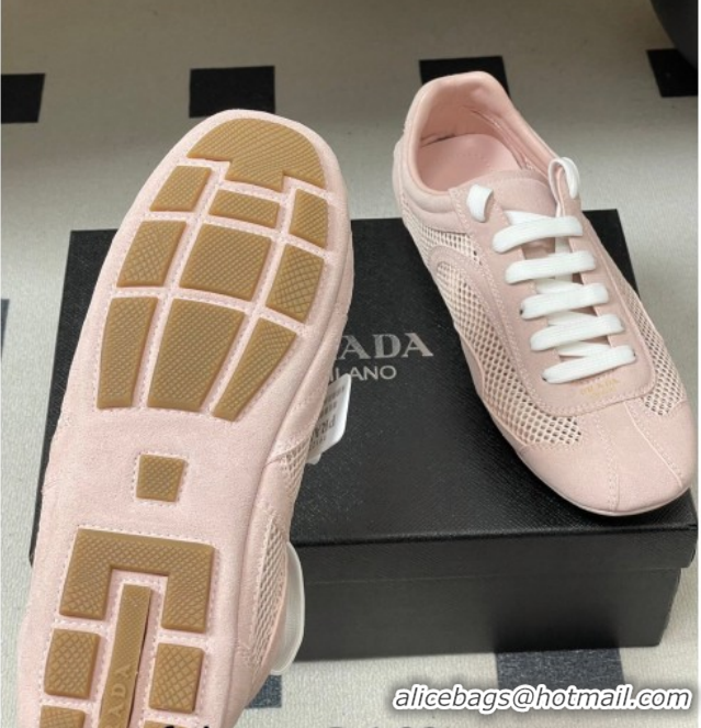 Your Position: Home > Shoes Plaza > Prada Shoes > Shop Cheap Prada Montecarlo Re-Edition 2005 suede and mesh sneakers Light Pink 1E247O 0228058