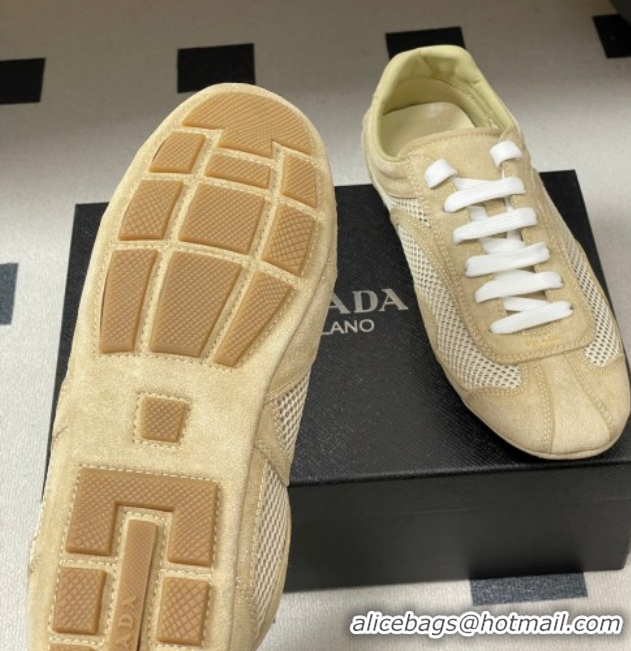 Good Quality Prada Montecarlo Re-Edition 2005 suede and mesh sneakers Beige 1E247O 0228059