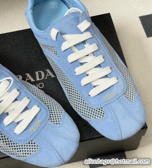 Pretty Style Prada Montecarlo Re-Edition 2005 suede and mesh sneakers Blue 1E247O 0228060