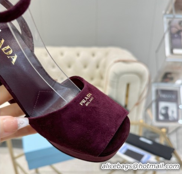 Good Quality Prada Suede Platform Heel Sandals 12cm Burgundy 2025 PR102707 1027131