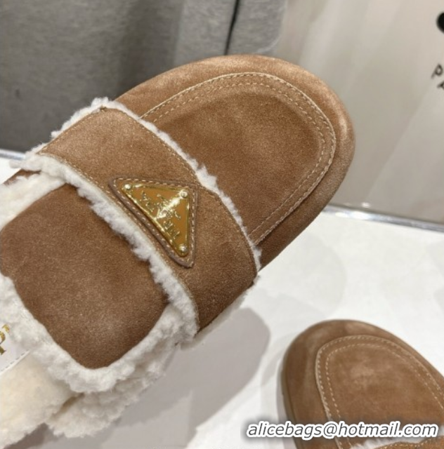 Best Price Prada Suede and Shearling Slippers Brown2 2025 PR101107 1027005