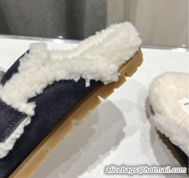 Good Quality Prada Suede and Shearling Slippers Dark Grey 2025 PR101107 1027006