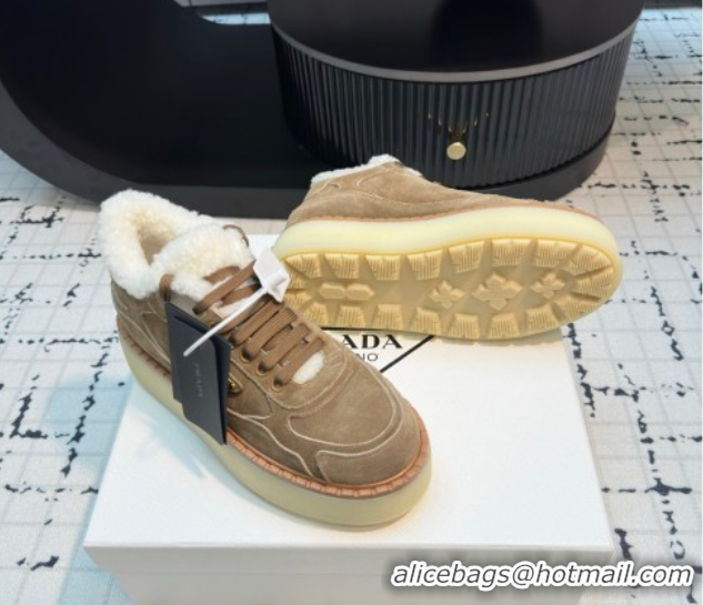 > Shoes Plaza > Prada Shoes > Top Grade Prada Suede and Wool Platform Mid-top Sneakers 5cm Brown2 2025 1T725N 1027096