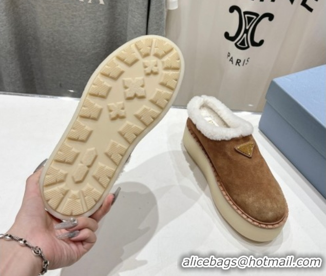 > Shoes Plaza > Prada Shoes > Unique Style Prada Suede and Wool Platform Mules Brown 1S715N 1027010