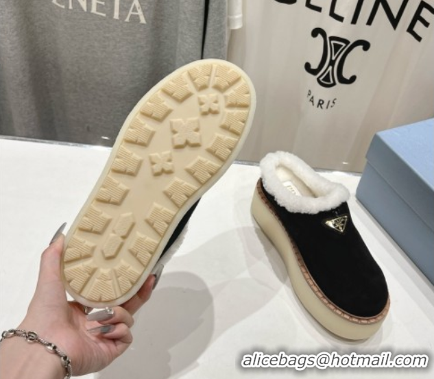 Your Position: Home > Shoes Plaza > Prada Shoes > Good Quality Prada Suede and Wool Platform Mules Black 2025 1S715N 1027011
