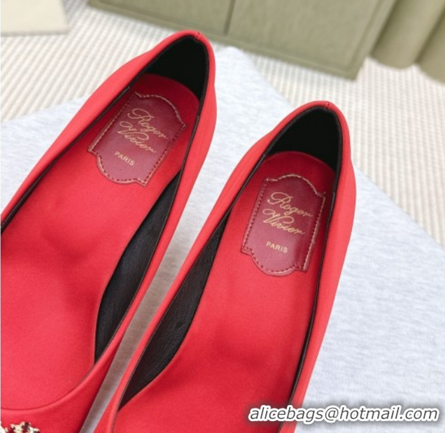 Your Position: Home > Shoes Plaza > Roger Vivier Shoes > Best Price Roger Vivier Efflorescence Jewel Pumps 6.5cm in Satin Red 1030102