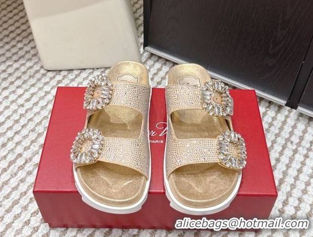 Good Quality Roger Vivier Slidy Viv' Strass Buckle Flat Slides Sandal 0225043 Gold 2026