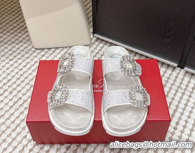 Unique Style Roger Vivier Slidy Viv' Strass Buckle Flat Slides Sandal 0225043 Silver 2026