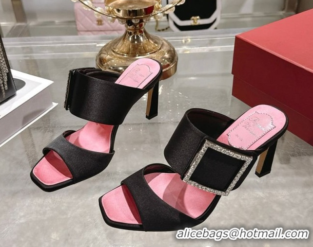 Good Quality Roger Vivier Trompette Heel Slides Sandal 8.5cm in Satin 0225025 Black 2026
