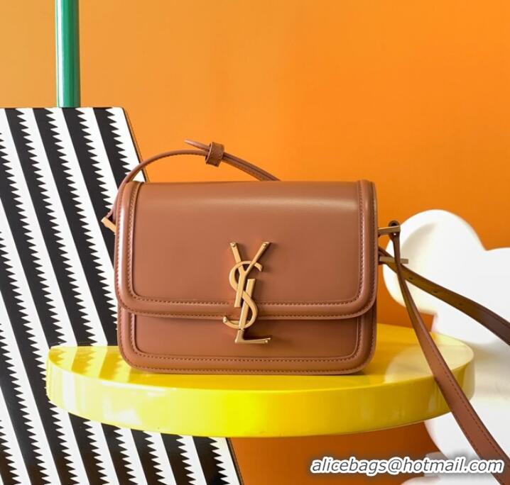 Discount SAINT LAURENT SOLFERINO SMALL SATCHEL IN BOX LEATHER 634306 BROWN