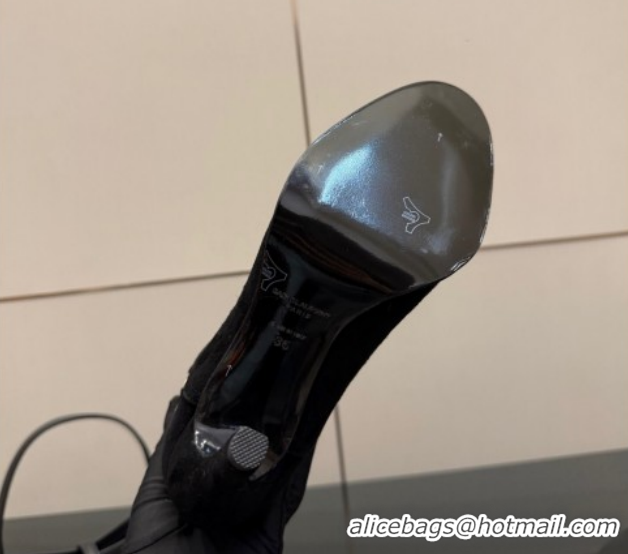 Low Price Saint Laurent Diane Heel High Boots 10.5cm in Suede with Logo Strap Black 1213015