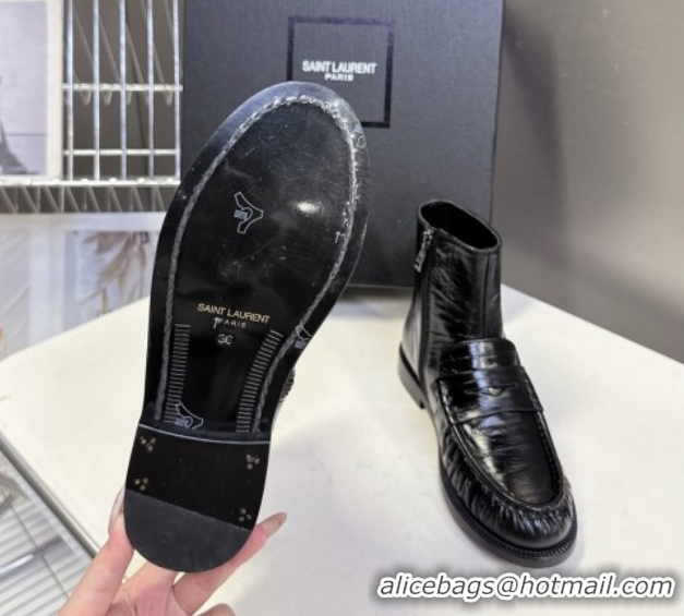 > Shoes Plaza > Yves Saint Laurent Shoes > Good Quality Saint Laurent Le Flat Booties in Eel Embossed Leather Black YSL121301 1213039