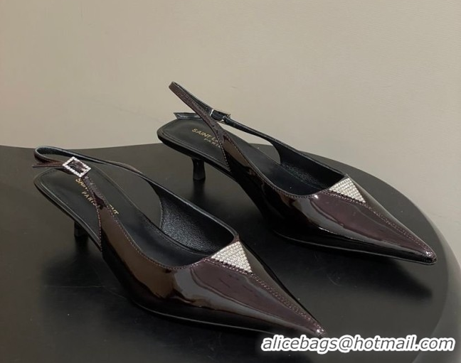 Best Grade Saint Laurent Shiny Leather Slingback Pumps 4cm with Buckle and Strass Burgundy 2026 SL082501