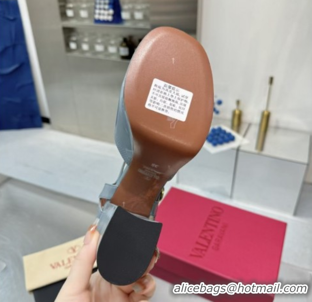 Classic Hot Valentino VLogo Silk Slingback Pumps 8cm Light Blue 112950