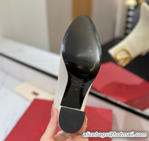 Your Position: Home > Shoes Plaza > Valentino Shoes > Grade Quality Valentino Maxi-VLogo Heel Ankle Boots 8cm in Calfskin Leather White VLTN121603 51216028