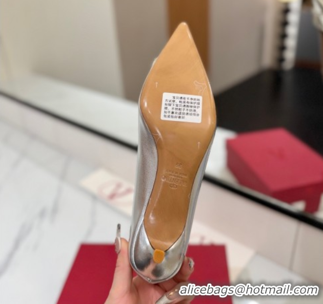 Good Quality Valentino VLogo Signature Pumps 4.5cm in Calfskin Leather and Strass Silver VA082102