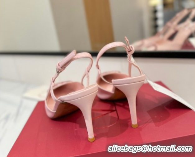 Crafted Valentino VLogo Signature Slingback Pumps 8cm in Calfskin with Strass Light Pink 2025 VA082109