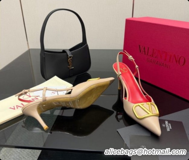 Purchase Valentino VLogo Signature Slingbacks Pump 8.5cm in Calfskin Leather Beige/Red 1215084