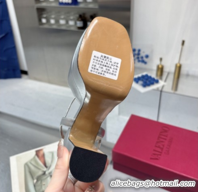 Good Quality Valentino Vlogo Signature Platform Pumps 11cm with Strass in Laminated Nappa Leather Silver 0902071