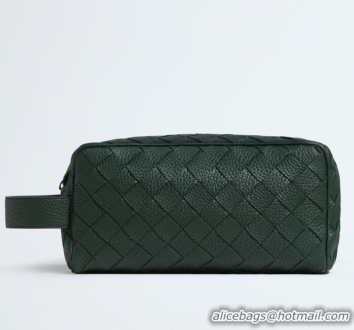 Luxury Cheap Bottega Veneta Men's Intrecciato Leather Travel Pouch 729295 Dark Green