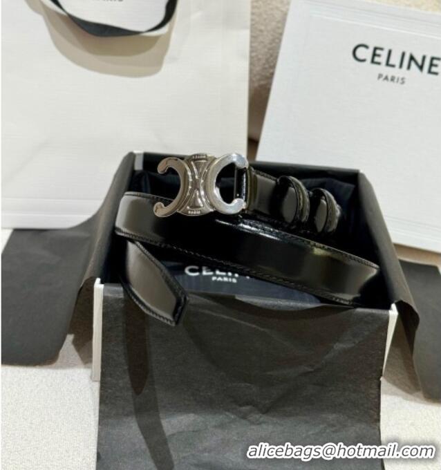 Good Taste Celine Calfskin Leather Belt 2.5cm with Silver Triomphe Logo Buckle CE011001 Black 2025