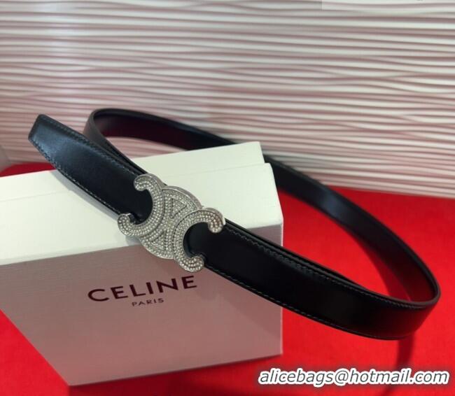 Good Taste Celine Triomphe Calf Leather Belt 2.5cm with Strass Buckle CL2013025 Black 2025