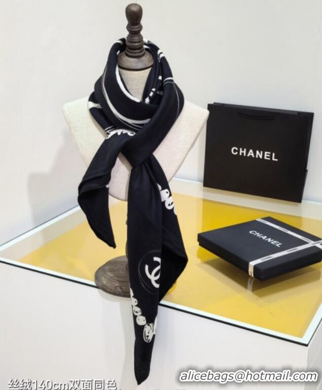New Design Chanel Cashmere Silk Square Scarf 140x140cm CH111164 Black 2025