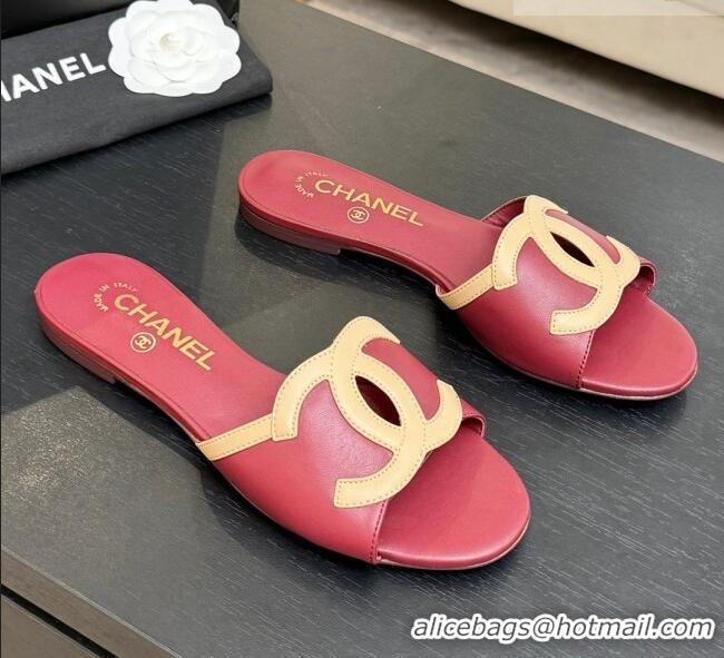 Top Quality Chanel Lambskin Flat Mules Sandals G47252 Deep Red 2026