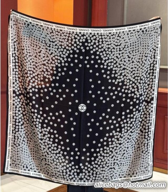 Good Taste Chanel Wool Silk Square Scarf 135x135cm CH111160 Black 2025