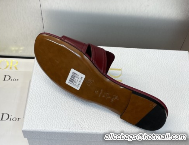 Super Quality Dior 30 Montaigne Flat Slides Sandal in Calfskin Leather Burgundy DR082205 0822098