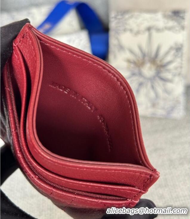 Popular Style Dior Caro Glycine Card Pouch Wallet in Cannage Grained Calfskin 0415 Burgundy 2024